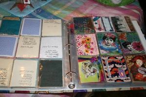 I keep my Art Trading cards in a notebook and use baseball card plastic pages.