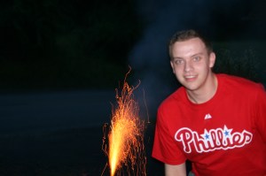 The above is in our driveway. Sean bought a big package of fireworks. It started to rain right as they were finishing up ‘their show’.