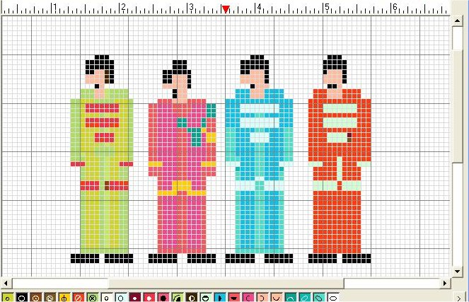 Found a really cute idea on Flickr. I love that site-so many talented photographers and craftspeople. A young lady, Ruby, turned ‘Mini pops’ into a cross stitched project. They are famous little people, say Indiana Jones, that are really tiny. She said she opened a gif file in her paint program to print out the figures and then graphed them.