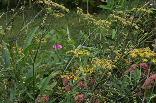 Here’s what I found out in the herb bed, munching on fennel and dill: