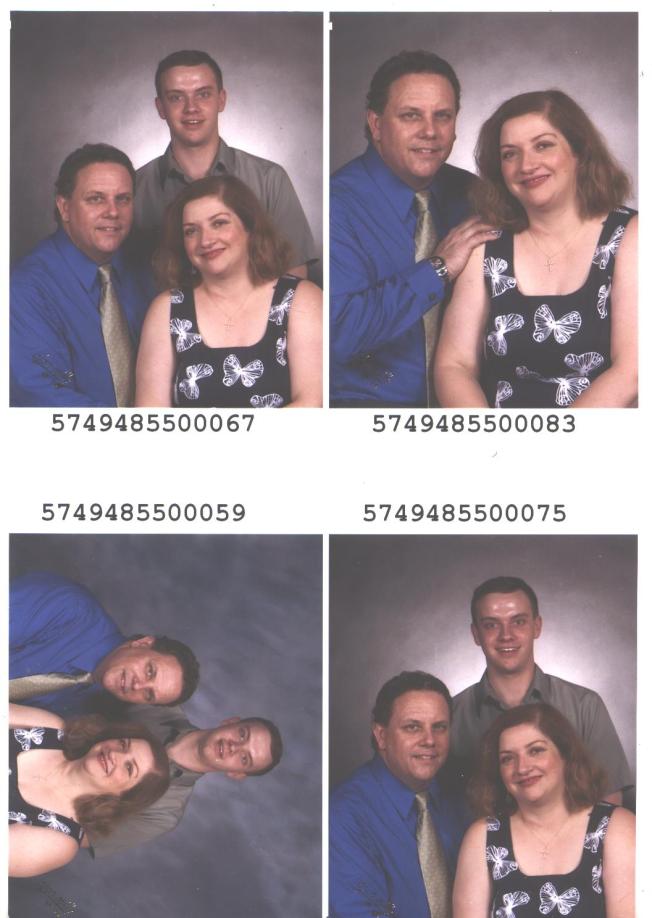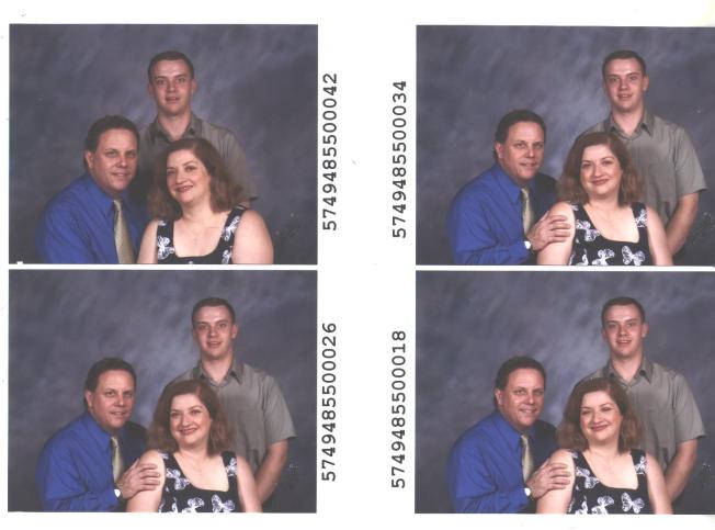 We got our portraits today and I’d thought I’d tease you with showing you the proofs. Our church is making up a directory and one of these will be in it too. That’s the main reason we had them taken. I will show the excellent shot of Sean as we are calling it his graduation photo (May 09). We also purchased one of the two of us to represent our 25th wedding anniversary coming up in April. I did buy some Christmas cards with one of these also. Can you guess which two we used? And the seat belt mark is softened (my neck) on the 8x10s as is Sean’s shiny head, but they didn’t get rid of the string from my upper dress (like my Liz Claiborne?). You’ll have to look at these in larger mode. I didn’t wear my glasses so I wouldn’t have nose marks and then I get the selt belt mark! I personally like the one with #26 on the end of me and the one with #18 on the end of Bri, but I had my eyes closed (we didn’t use them)!