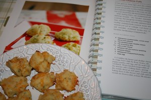 I did make some ‘Brooklyn Cheese Puffs’ from the ‘Lost Recipe’ cookbook. They were mainly ricotta cheese with a little flour, butter and cheddar cheese. You had to put them in the freezer for half an hour and then bake them in a 450 degree oven for 10 minutes. My oven was smoking!