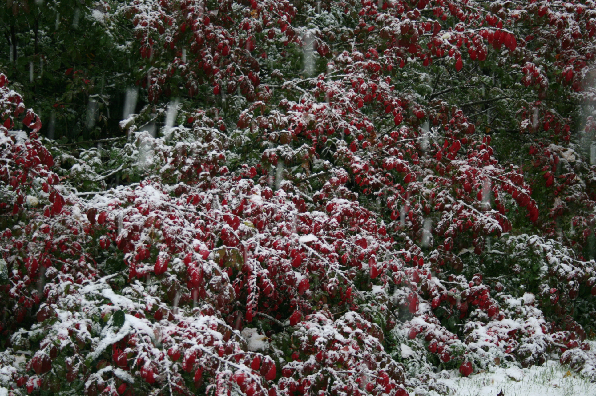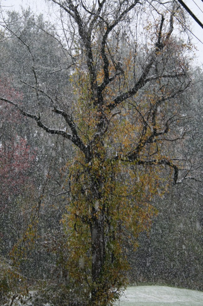 Snow in October is rare in these parts…I think the last time was 1979! Here are a few shots I just took outside. It’s about 33 degrees out and most of the leaves are still on the trees!