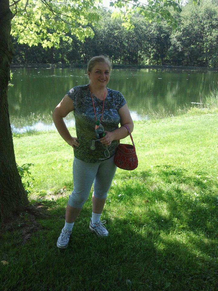I had to get Brian away from the sink for one day. He needed some other pipework, but he is having trouble with the plumbing part. I wanted to go to a park where Brian use to take Sean fishing many moons ago. It’s so pretty there! We walked around a pond, went down to a lower level and through the woods, past runners and a couple smooching. : ) The ‘key’ to finding these seems to be reading over past logs. When the clue said look for a ‘beech’, well I knew I’d have to go to the one identified by the marker about 10 feet or so off the trail. There were old tree limbs leaning against the tree-very unnatural! I moved them and lo and behold, I found cache #3!