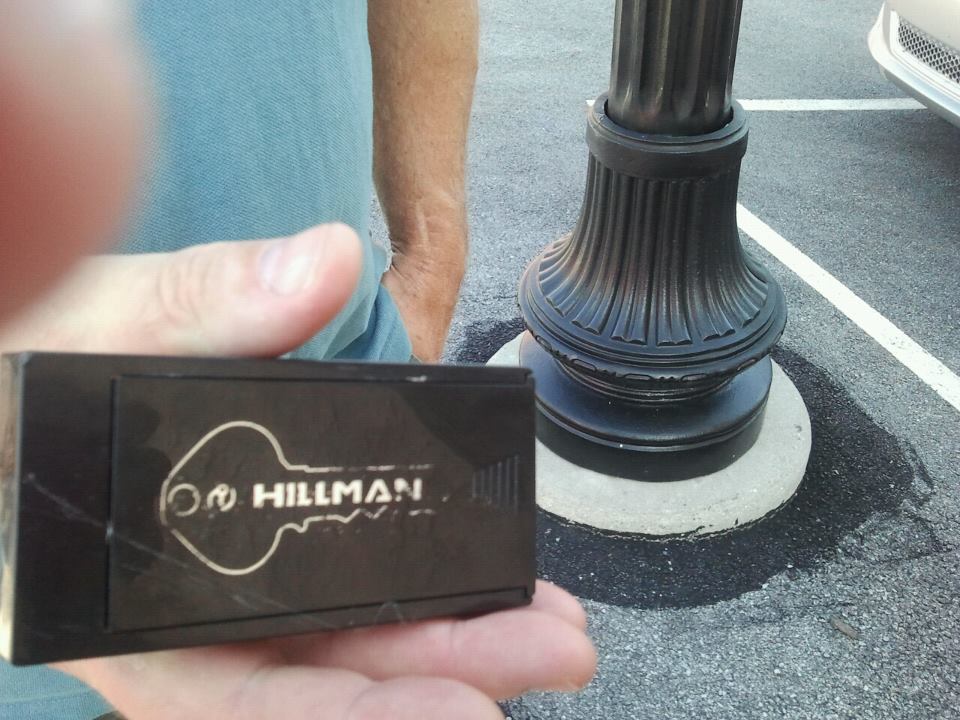 We went to West Grove, PA and the cache was near an ice cream shop. The GPS bounced from one side of the street to the other. It bounced near mailboxes-I didn’t think so. We got some ice cream and was asking the lady if people ever asked her about Geocaches, and she said she really didn’t know what they were when people did ask-so they did! So we told her about it and if I found it, I’d show her. So lo and behold, I walked by this metal tube thing on a telephone pole, but there were cobwebs over the top and I did find the keybox stuck inside-right near our car (right opposite the mailboxes). And I did show the lady at the ice cream parlor. Every piece of paper for the log was rolled in a ball, so I smoothed them all out. Very strange.