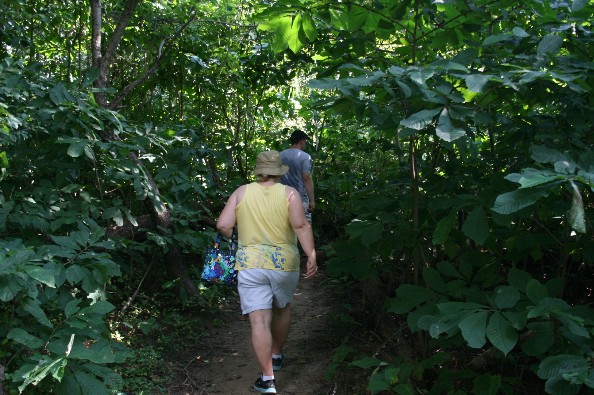 We still plugged along. Had to have the Vera Bradley purse in ‘the jungle’. By this time the guys were very perspired….with no water. The ‘gift shop’ at the light house was closed too.