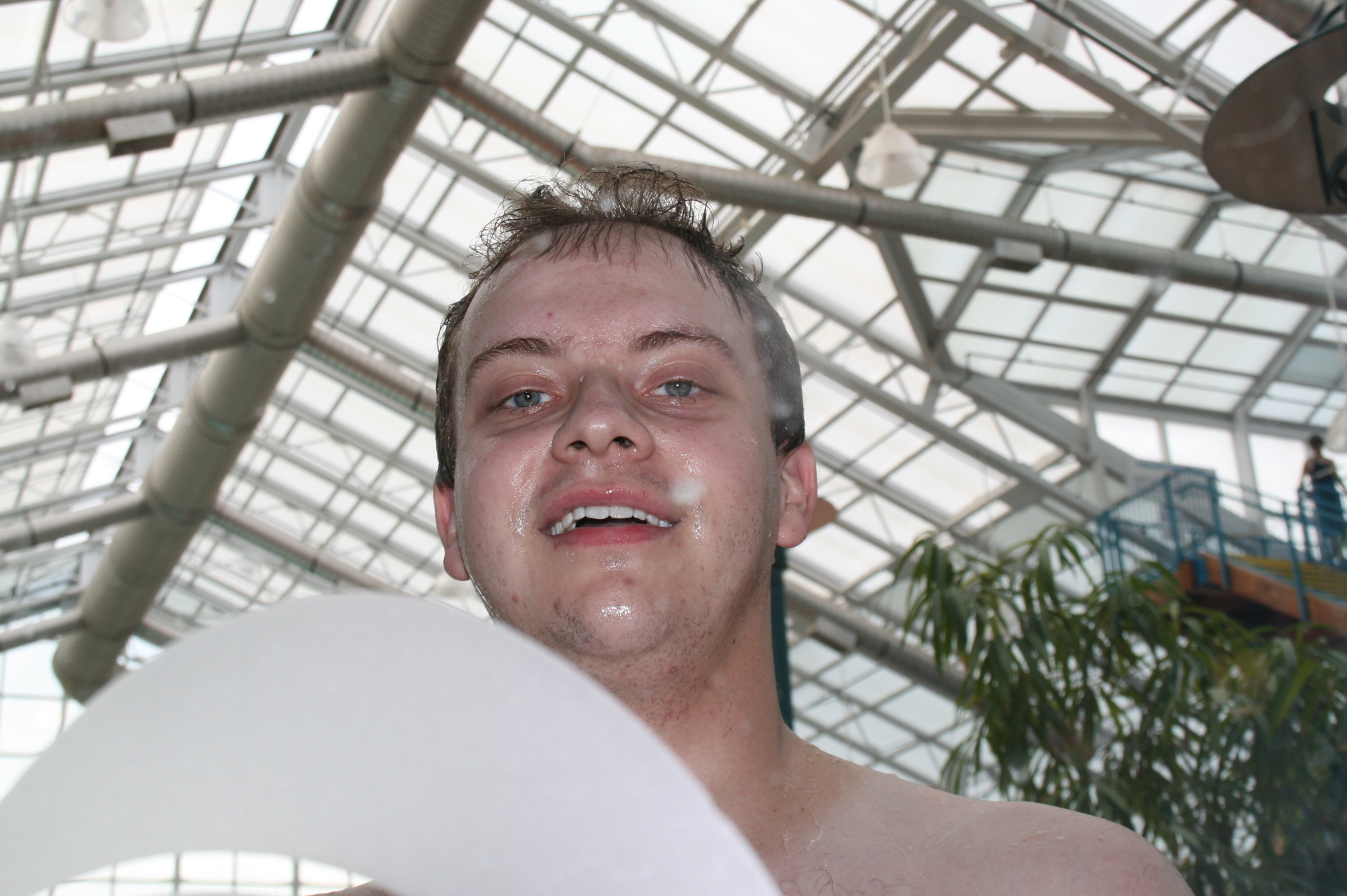 The next day in Niagara Falls, Sean wanted to use the water park at the hotel since they gave us access to it. He’s not a big pool person, but he enjoyed it for a little bit, even going down the super fast slide. Brian forgot his suit, so the two of us just watched and ate a quick lunch.