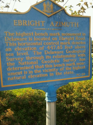 We get to the cache which is also the highest elevation in Delaware! A lady drove by and asked if we were ‘high markers’ and I was trying to be inconspicuous and of course said ‘yes’. Well low and behold her mom is into this organization and before we knew it, a 79 yr old lady came walking across the street.
