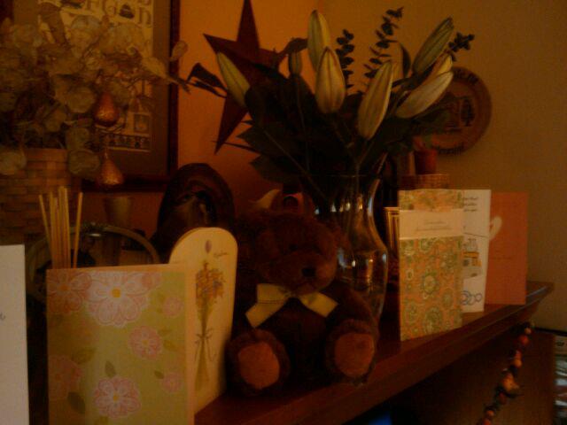 My mom and brother sent me Stargazer lilies, a teddy bear and chocolates. I got some awesome cards and a Target gift card from my pal Carole (Pea) and calendars from pal Angela. Sean gave me a Walmart gift card, the Jackie Evancho Christmas, candles and a t-shirt from the college he is attending and needs to return as it’s too big. Brian gave me a ‘D’ necklace and a heart necklace from Peebles. He had gotten me the other necklace from the craft show a few weeks ago. I bought myself the Sephora make-up kit and a few cross stitch charts for my collection.