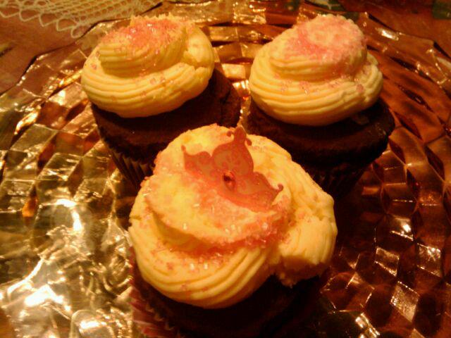 Chocolate cupcakes (gluten free) with butter cream icing.