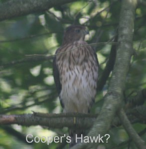 At first I thought it was a Peregrine Falcon, but it is really close to the Cooper’s Hawk! We have a development 1/2 mile down the road called ‘Falcon’s Lair’. But the funny thing is on the way to shopping yesterday, we passed a Lane called ‘Cooper’s Hawk’ in Chadds Ford! Go figure. I guess she was watching the bank and stream for dinner!