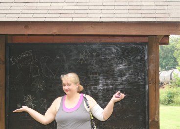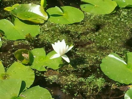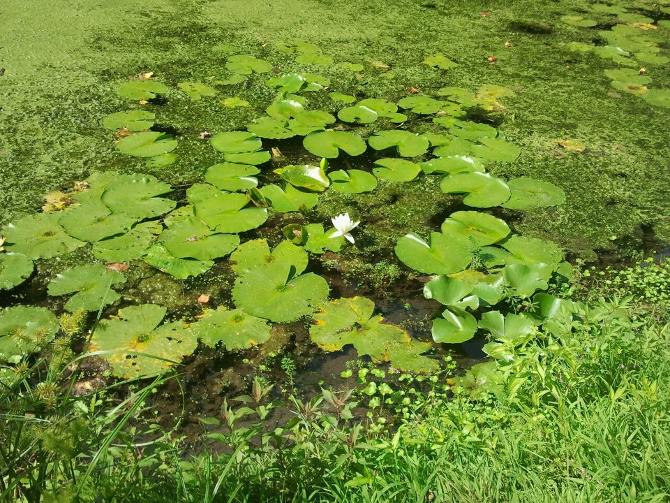 So we trudged on down the firework hill (thinking in the back of our minds about climbing up it again) and saw this neat sight of Scroggie Pond. It was all green as if paint had been spilled on it and it lay on top of the water.