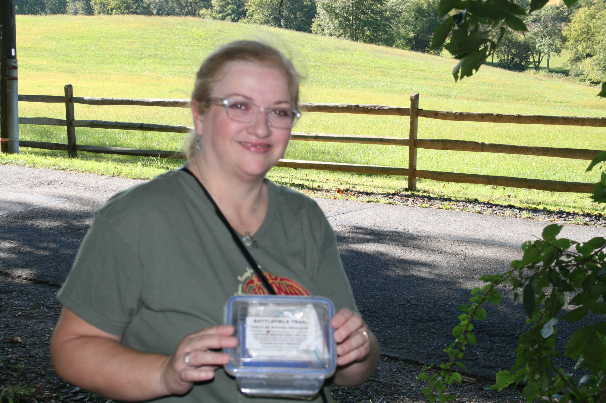 The next cache lead us to the Birmingham Quaker Meetinghouse. It was actually a Letter box, but I forgot my rubber stamper. It was hidden in a cut off tree’s big stump.