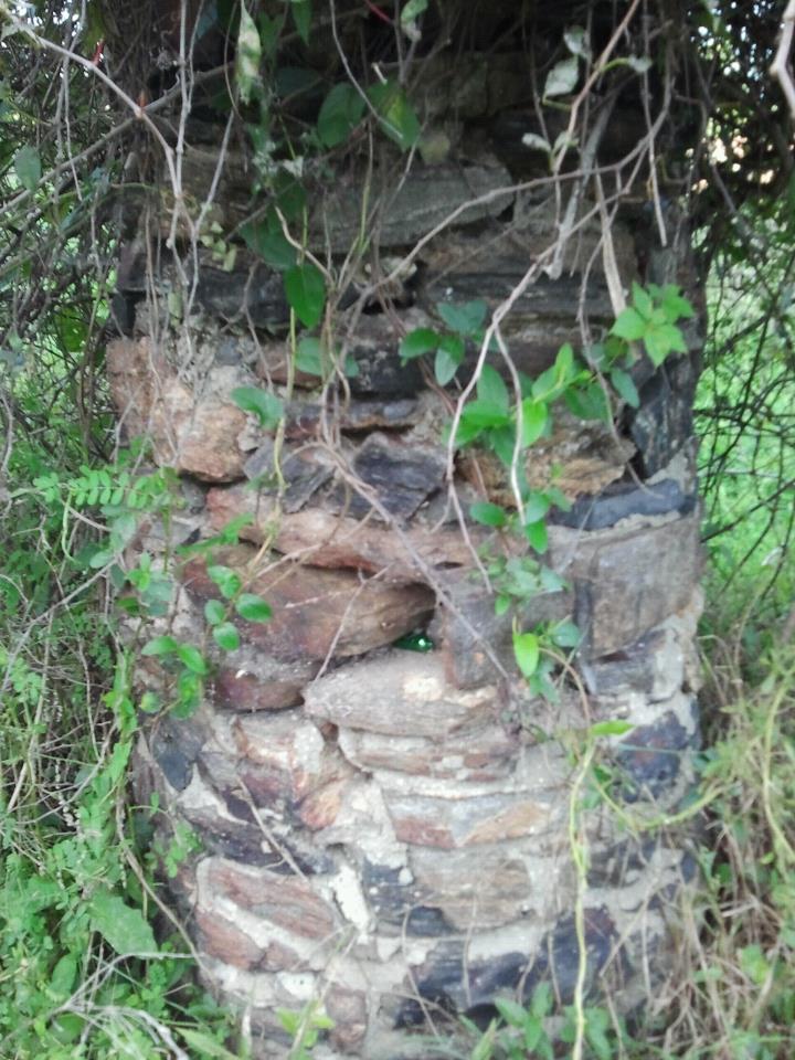 Can you see the green bison tube? This was called ‘Twin Towers’ although the other one like this is gone now. Not sure what this was part of in the past-wells? Anyway, as we walked up near this in terrible overgrown weeds, etc. A snake fell down on top of the cache! Then he slivered back up inside! Eek!