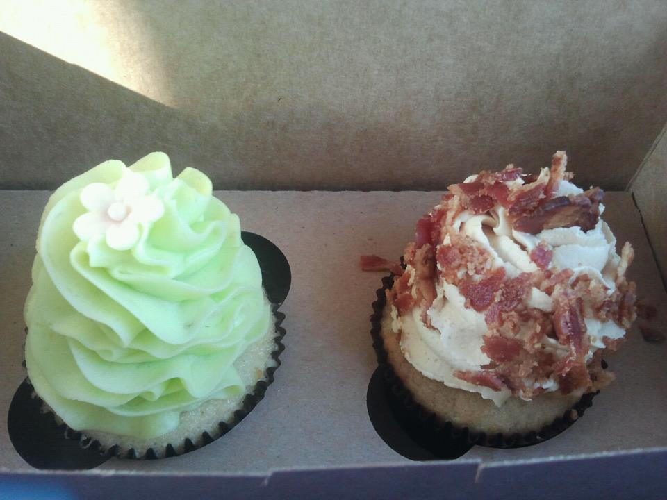 We stopped for a yummy cheese steak sandwich in a shop that was too warm. A few doors down was a cupcake place…yeah, I splurged ($2.25 each). I got one with Carole/Pea in mind as she’s at a tribute event for Elvis this weekend. I tried half-it’s a banana cupcake with peanut butter frosting and bacon. I thought it needed more of a contrast between sweet and savory. The other I bought was a Key lime with coconut cake-nice.