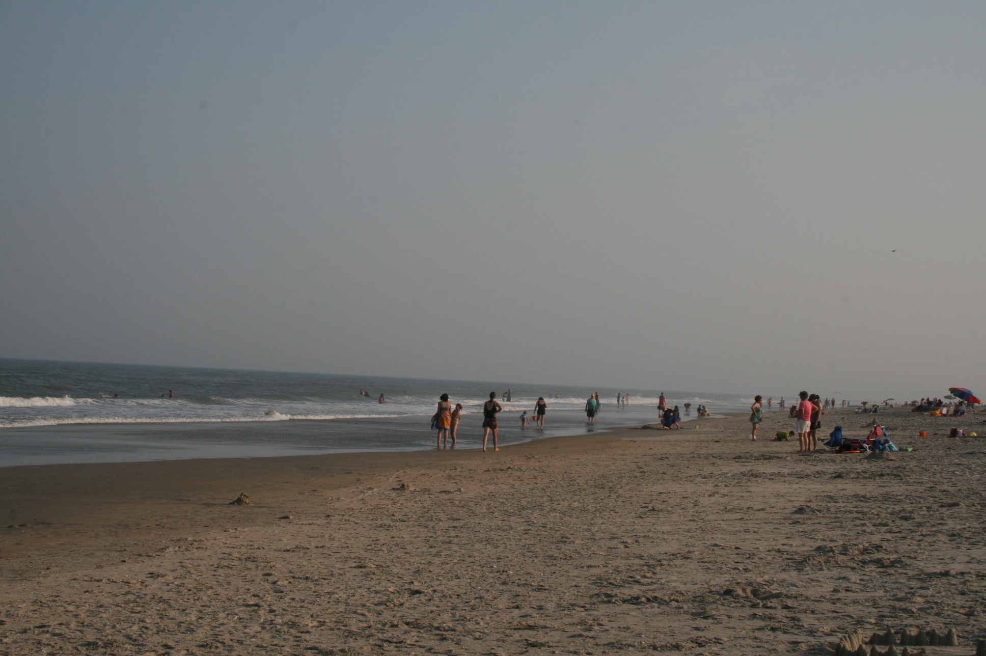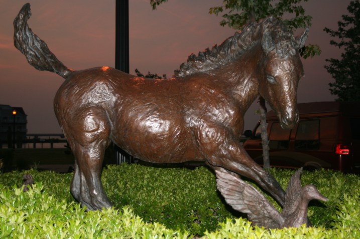 After we went to the aquarium (on the 20th), we headed to the island of Chincoteague. We had gone last year and loved the hotel (alas it was booked solid this year) and the beach in the park. We stayed in America’s Best which had the door that opened right up to the outside. This isn’t good in Chincoteague as it is known for it’s mosquitoes. The room was a bit tight also. We went right to the beach at around 6 pm.