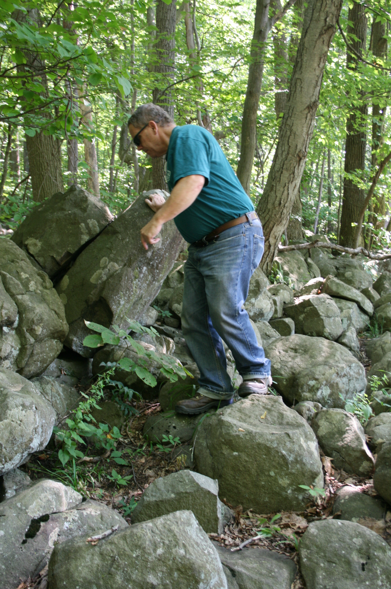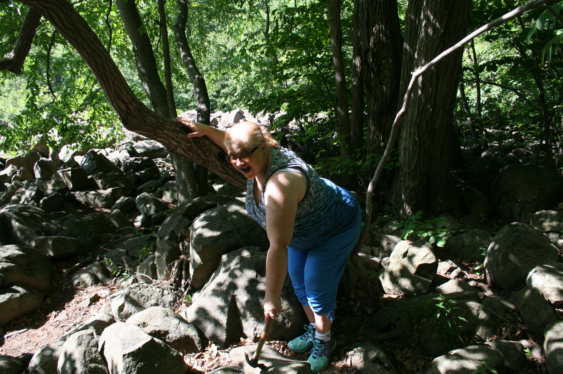 Before we headed to Ocean City, the three of us went about 70 miles to Ringing Rock County Park in Bucks County. A hammer was found and loaded in the car! Sean had just gotten his new car and wanted to take it for a test drive. It was one of those places that you have heard about and needed to see in real life. Plus it was an earth cache! We got there a little late, but the parking was close to the big field of rocks. Apparently their content of aluminum and iron makes them have a bell like sound when struck! Brian and I stated on the perimeter while Sean climbed a bit more into the main area. Brian didn’t have flexible shoes on and I just can’t climb that well. I got to hit a few rocks though. The field of boulders is in 7-8 acres of the 128 acre park. Apparently there is a waterfall too. We all agreed to go, not knowing it was 70 miles. I guess we travel enough to think that isn’t too far.